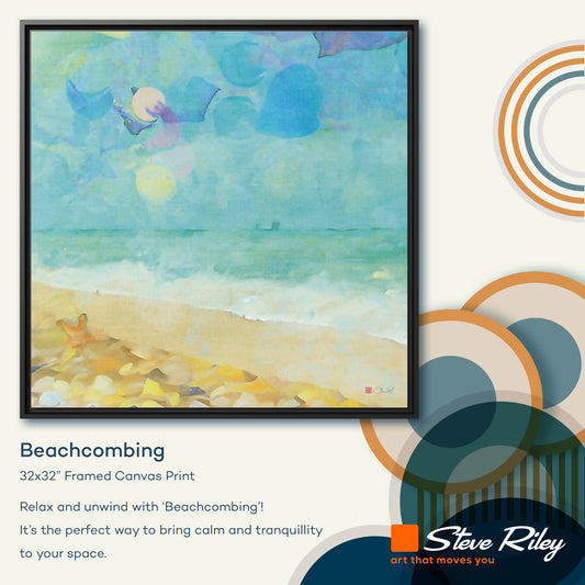 32x32" Framed Canvas: "Beachcombing"