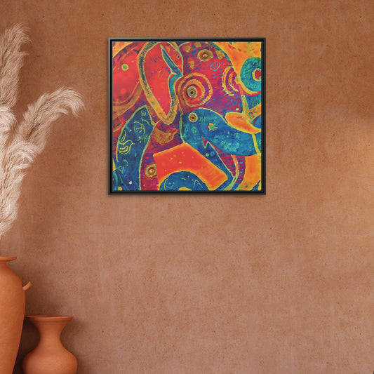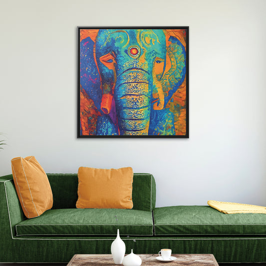 32x32" Framed Canvas: "Elephant Regalia"