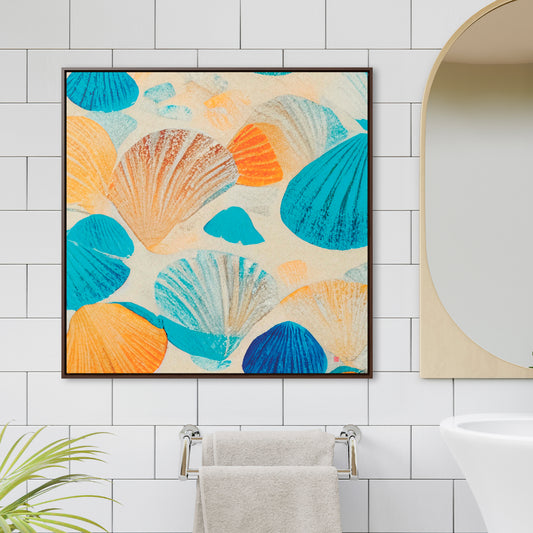32x32" Framed Canvas: "Collecting Shells"