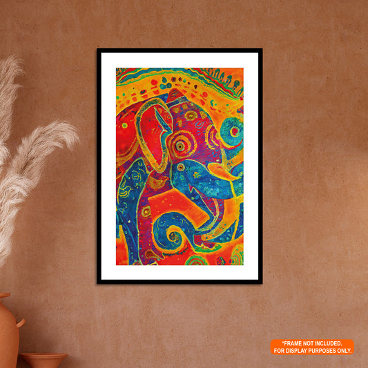 Elephant Regalia - Vibrant Abstract Print Rolled Poster