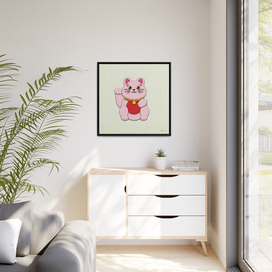 32x32" Framed Canvas: "Pink Maneki-Neko"