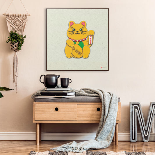 32x32" Framed Canvas: "Gold Right Paw Maneki-Neko"