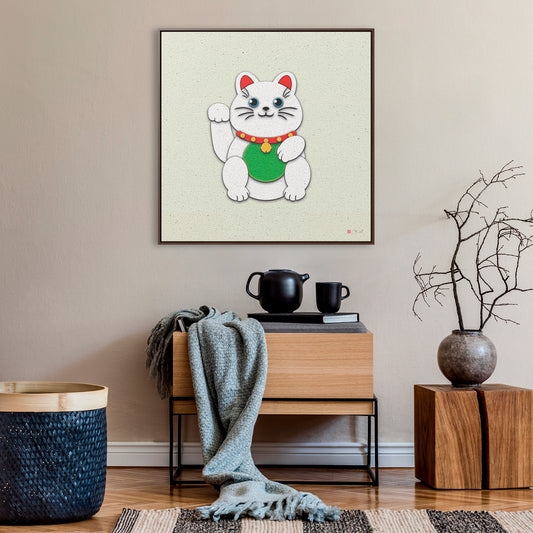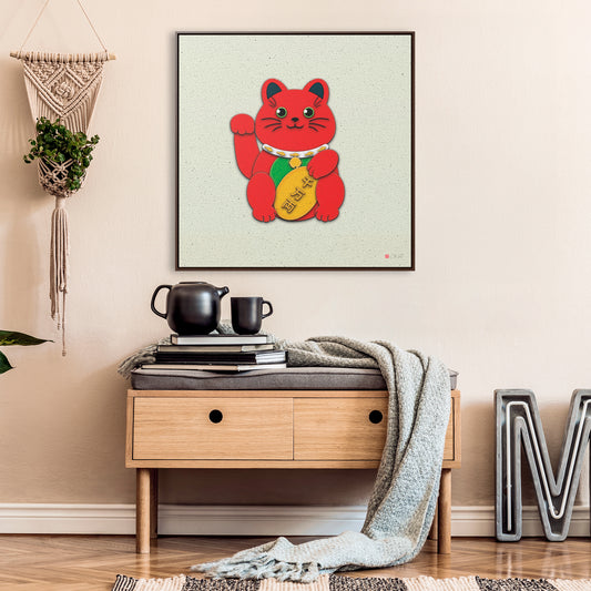 32x32" Framed Canvas: "Red Maneki-Neko"