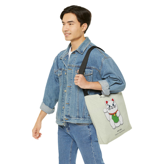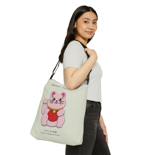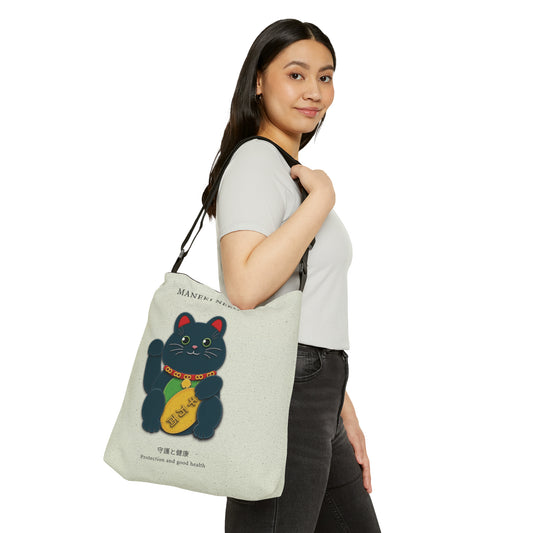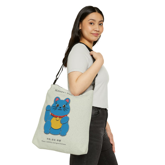 Gold Left Paw Maneki Neko Adjustable Tote Bag