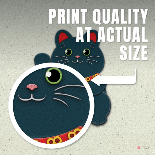32x32" Framed Canvas: "Black Maneki-Neko"
