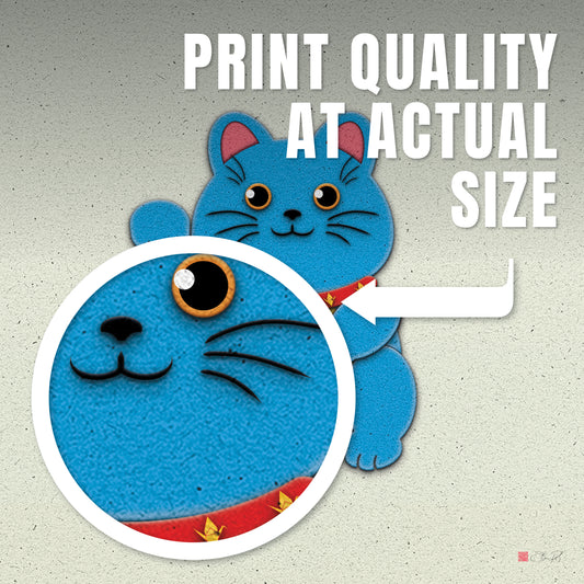 Blue Maneki-Neko Bringing Peace, Stability, and Good Fortune - Framed Print