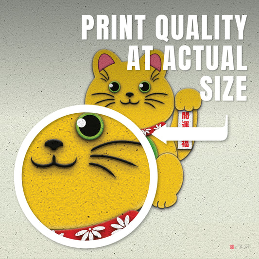 32x32" Framed Canvas: "Gold Right Paw Maneki-Neko"