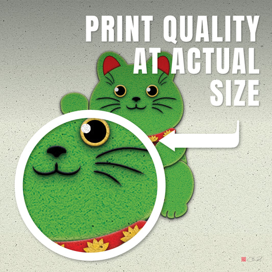 32x32" Framed Canvas: "Green Maneki-Neko"