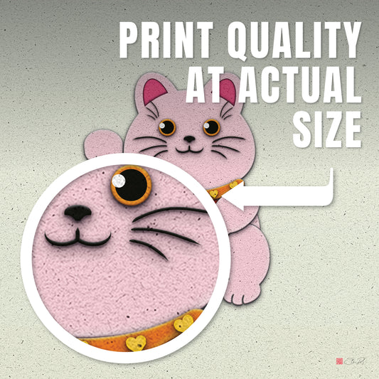 32x32" Framed Canvas: "Pink Maneki-Neko"