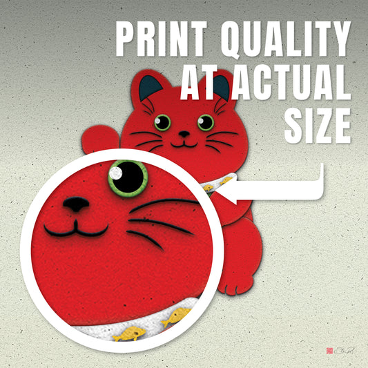 Red Maneki-Neko Attracting Success and Prosperity - Framed Print