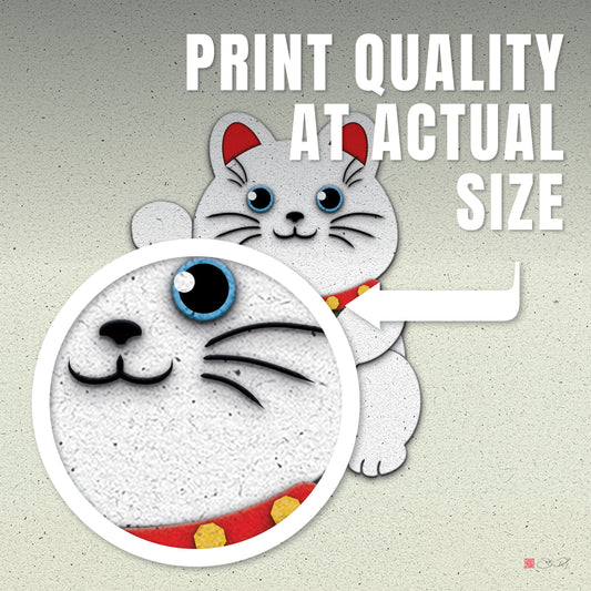 White Maneki-Neko Providing Purity and Happiness - Framed Print
