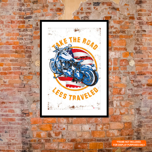Take the road less traveled - Vintage Bike Art Rolled Poster