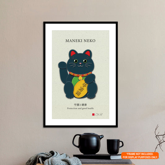 Black Maneki-Neko Kirigami Style Art Rolled Posters
