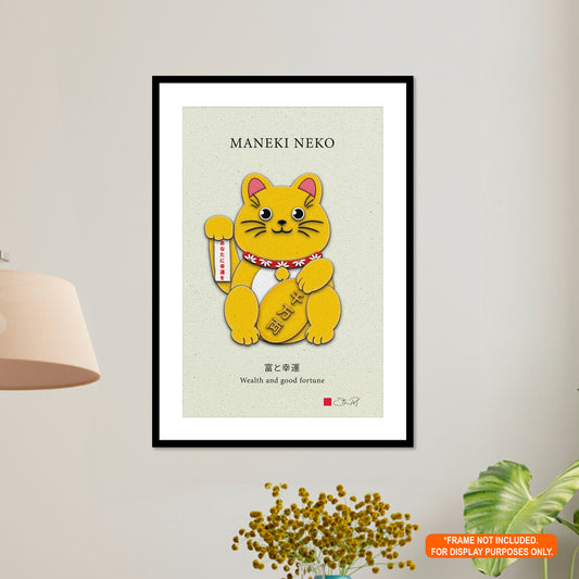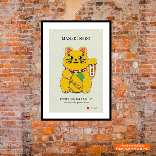 Gold Right Paw Maneki-Neko Kirigami Style Art Rolled Posters