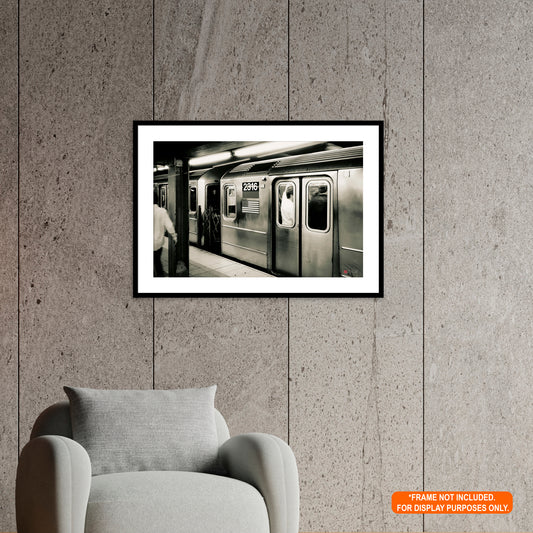 Retro Subway Train 2316 - Black and White Photograph Art Rolled Poster