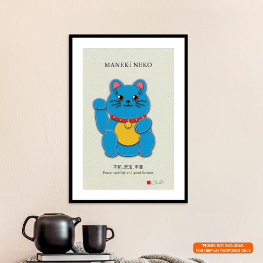 Blue Maneki-Neko Kirigami Style Art Rolled Posters
