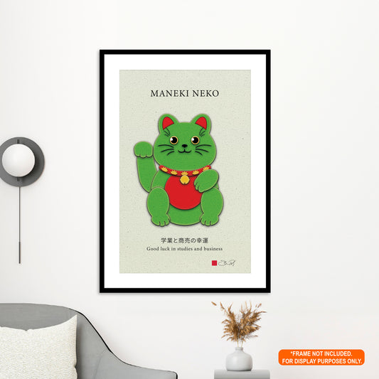 Green Maneki-Neko Kirigami Style Art Rolled Posters