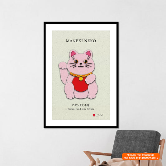 Pink Maneki-Neko Kirigami Style Art Rolled Posters