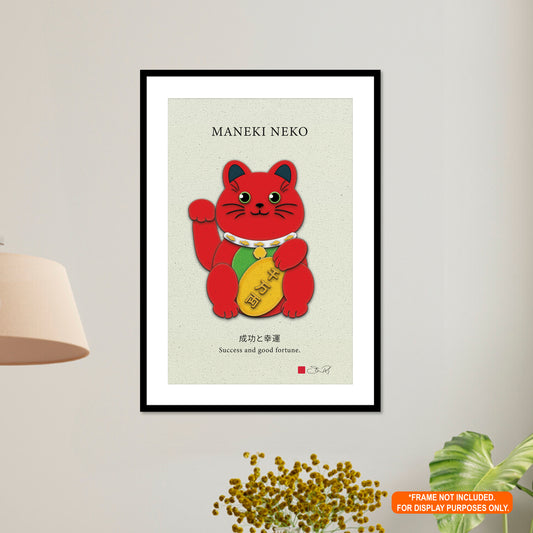 Red Maneki-Neko Kirigami Style Art Rolled Posters