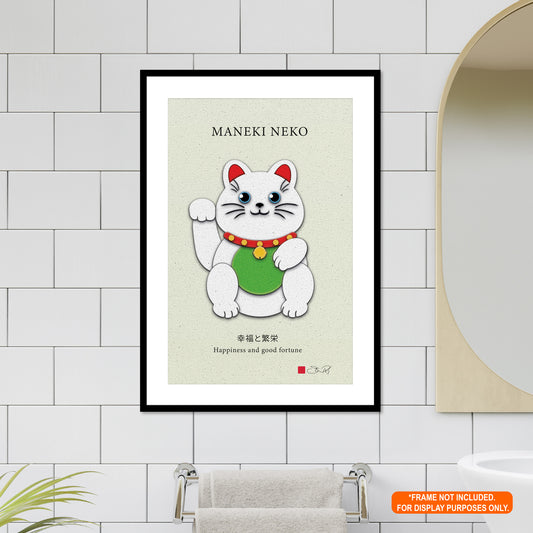 White Maneki-Neko Kirigami Style Art Rolled Posters