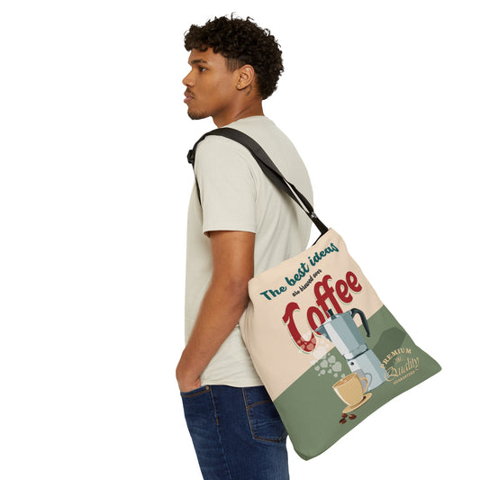 The Best Ideas Are Brewed Over Coffee Adjustable Tote Bag